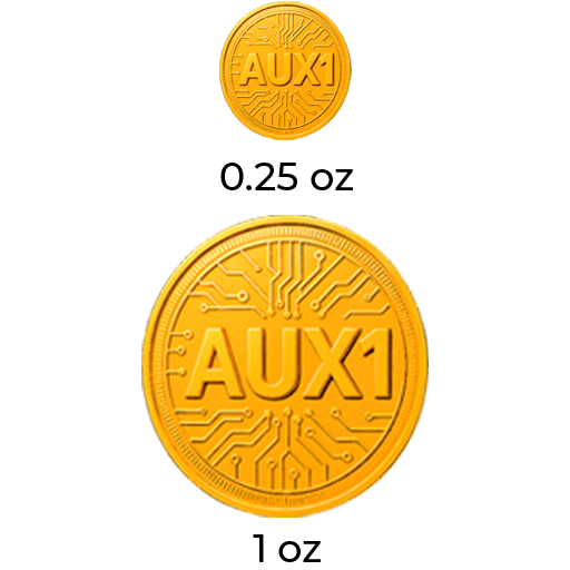 Every quarter-ounce and one-ounce AUX1 token is issued a serial number which is matched to gold and stamped with that serial number when it ships to you. You’ll be notified instantly when your golds process is completed, on a First-in-First-out system.